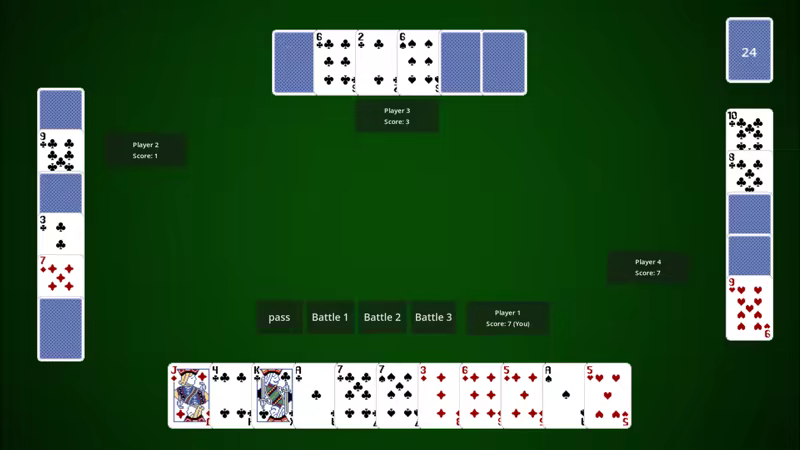 Simple game rules, you only need one game to get started, you only need to choose one of "Skip", "Battle 1", "Battle 2", "Battle 3", and then wait for the settlement to give points to your opponent or yourself