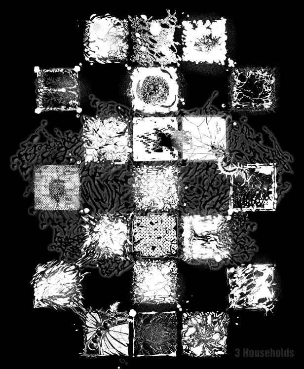 The common aesthetic between games and queerness is endless ‘failure.’ The experience of games, where problem solving and goal achievement are the main driving forces, is strung together by countless failures and the pain of enduring those failures. What about growth? A new game entails a new set of rules and context, commanding a re-learning to take place every time. ‘Failure’ is essentially inherent in games, and linear and continuous growth is impossible. Failing in ‘normality’ and living a life without a model, queerness simultaneously demolishes and constructs over and over again. 3 Households is a ‘queer architecture game’ that shows the aesthetics of this double failure. Actants such as “the Mind of a Destructive Mother,” “the Quantum Wave Field of a Productive Daughter,” and “the Physical Constitution of the Daughter’s Potential Girlfriend” build and protect the house. For them, tending to the house is an act of tearing down what used to be a heteropatriarchal home. It constantly undermines society's demand to “know one’s place” as well as the notion of a sweet home as a warm, safe and secure place. There is no place more traumatic than a home. In the unstable, queer house built in this game, children also give birth to parents.