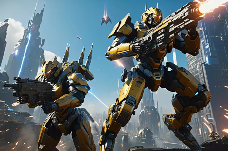 Sky Running - Control your Mech in-flight and fight off the competition in a breakneck race to the finish line within a low gravity arena filled with explosive obstacles.