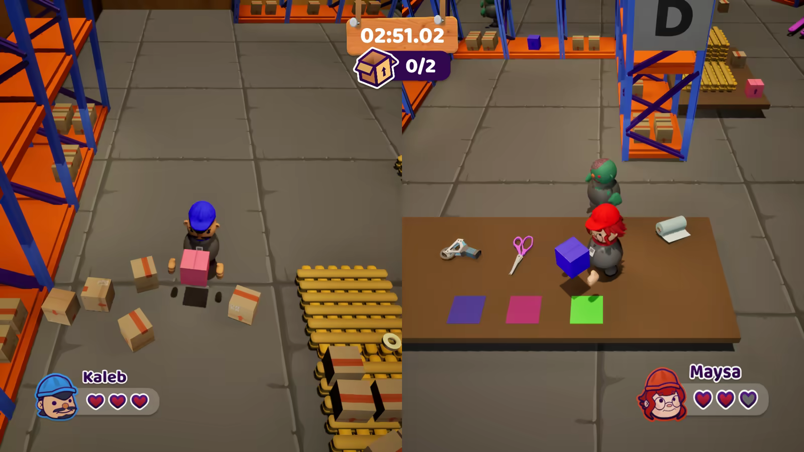 In Aboxcalipse, you step into the shoes of Kaleb, a stock clerk tasked with keeping warehouse operations running even as a zombie apocalypse unfolds around you. This intense 3D top‑down co‑op experience for up to two players challenges you each stage to collect colored materials, combine them correctly into boxes, and load the truck before time runs out—all while clumsy zombies try to sabotage your efforts.