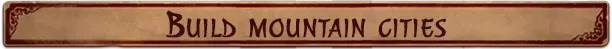 Colonize uninhabited wild slopes. Search for the right spots so that your settlements are easy to reach by traders and porters, but also safe from natural disasters, animals and foes. Make sure that there is room for necessary infrastructure and future expansion. Try to make living in the mountains easier for your citizens.![]()