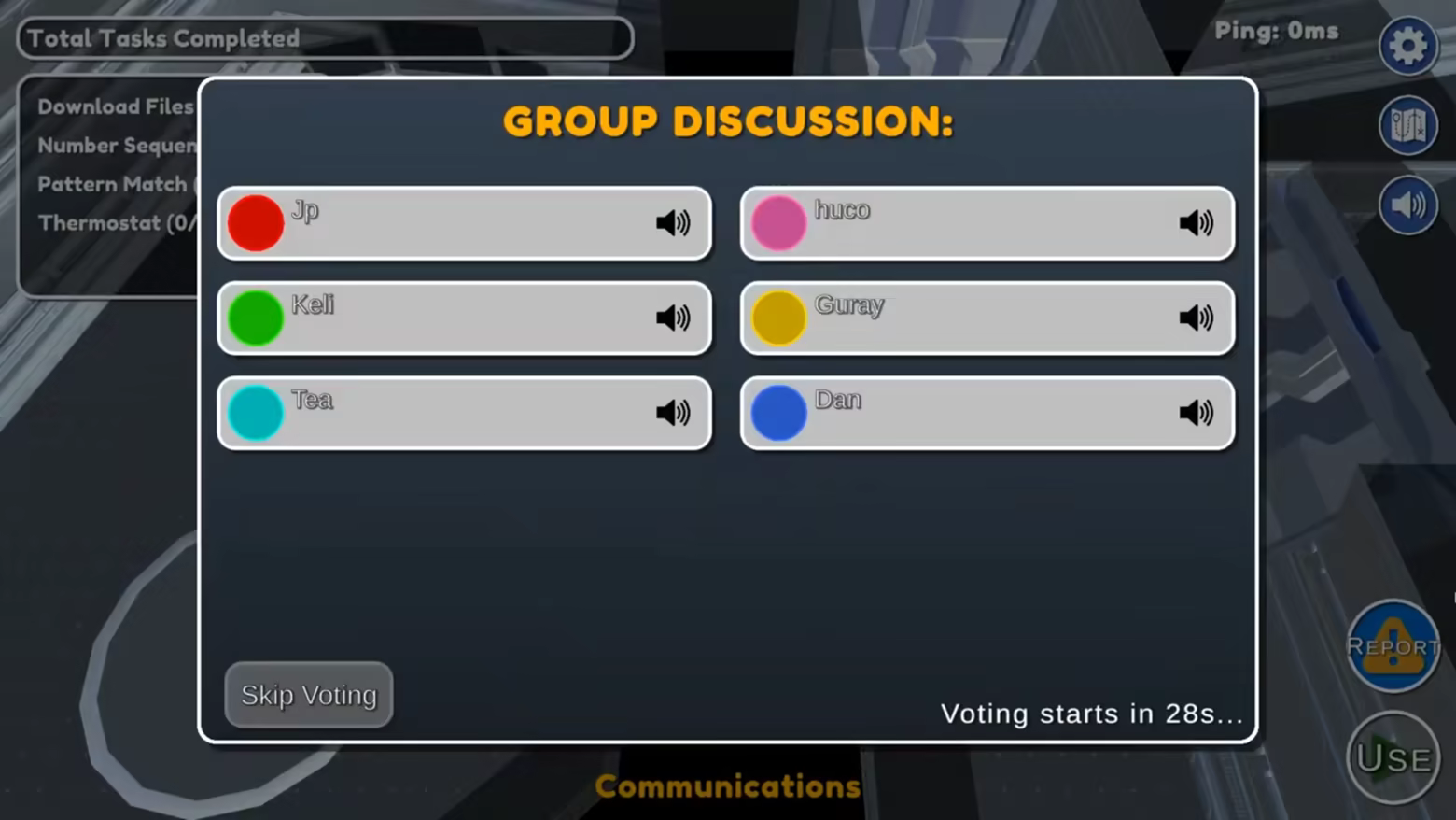 Find bodies or trigger emergency meetings to start discussions.Discuss & Vote