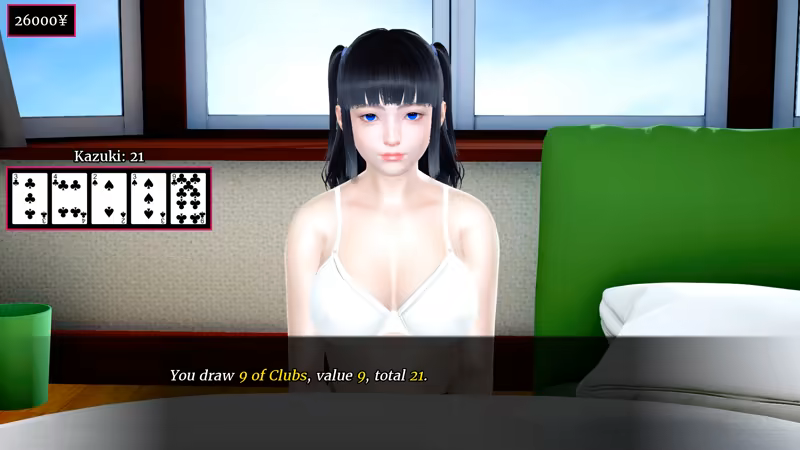 Your childhood best friend has invited you to her room to play Blackjack. First, you'll bet money, as usual. But when the money runs out, it'll be time to wager other things. And the more you win, the more intense the bets will become. Become a Blackjack pro and the stud your friend is looking for—seduce her again and again, and take your relationship to the most thrilling levels possible with over 15 available sex positions.