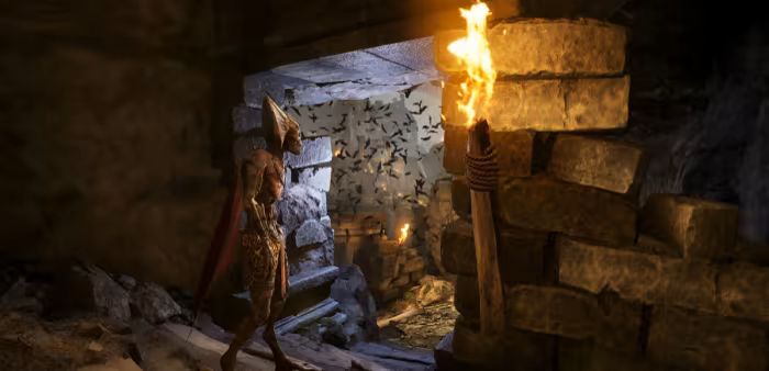 Climbing, platforming, and navigating unstable terrain through crumbling ruins, ancient mechanisms, and vertical spaces.