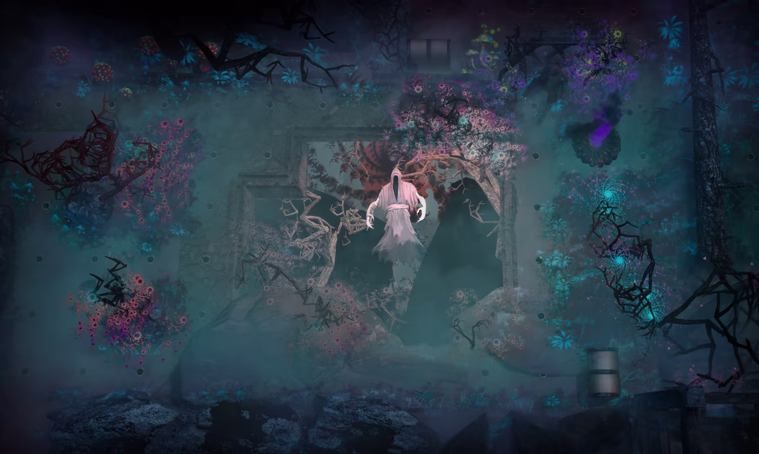 Enter a mysterious forest inspired by Slavic mythology - a place that breathes and feels. Twisted fractal trees reach toward the sky, and something unsettling moves across the ground.