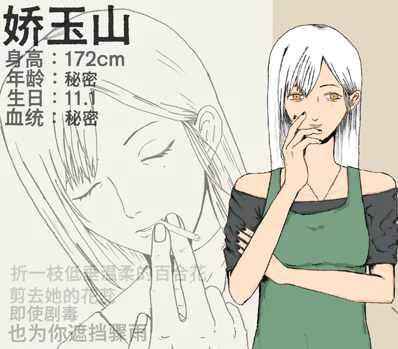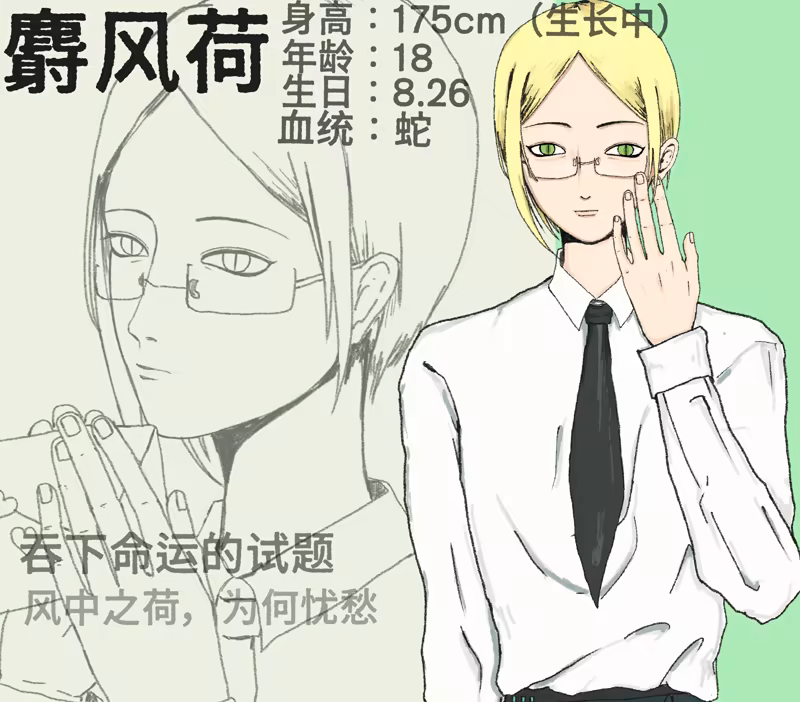 Meixing Ji- He’s an orc with salamander-like abilities and can transform quite a bit. He’s a rich kid who just transferred to Orchid Middle School. His family doesn’t seem to care much about him, so he’s pretty quiet and shy. But don’t underestimate him—he’s incredibly persistent when he sets his mind on something. Once he latches onto you, it’s hard to shake him off. Kind of like morning glory vines that won’t let go unless... well, you know.
