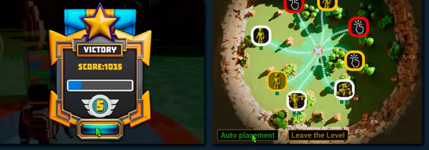 After winning, you can get coins, perks, and bonus units. The hero and the units increase their level over time, become stronger, it helps to win in difficult locations. If you have reached the third level, you can capture a location by installing protection from your units on it. A window will appear for arranging your units, at the top - the number of attacks and available locations, in the center — the location of spawns and directions of movement.