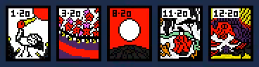 All cards show their month (1–12) and point value (20 / 10 / 5 / 1) in Arabic numerals