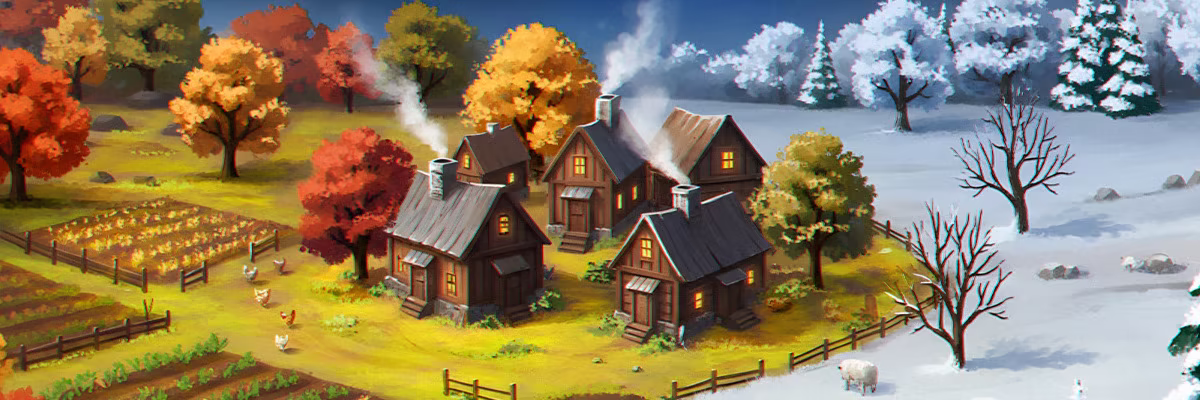 You're building a settlement where spring and summer feel generous—resources flow, population grows, everything seems manageable. Then autumn arrives and you remember: winter stops food production. Everyone needs to eat and get warm.