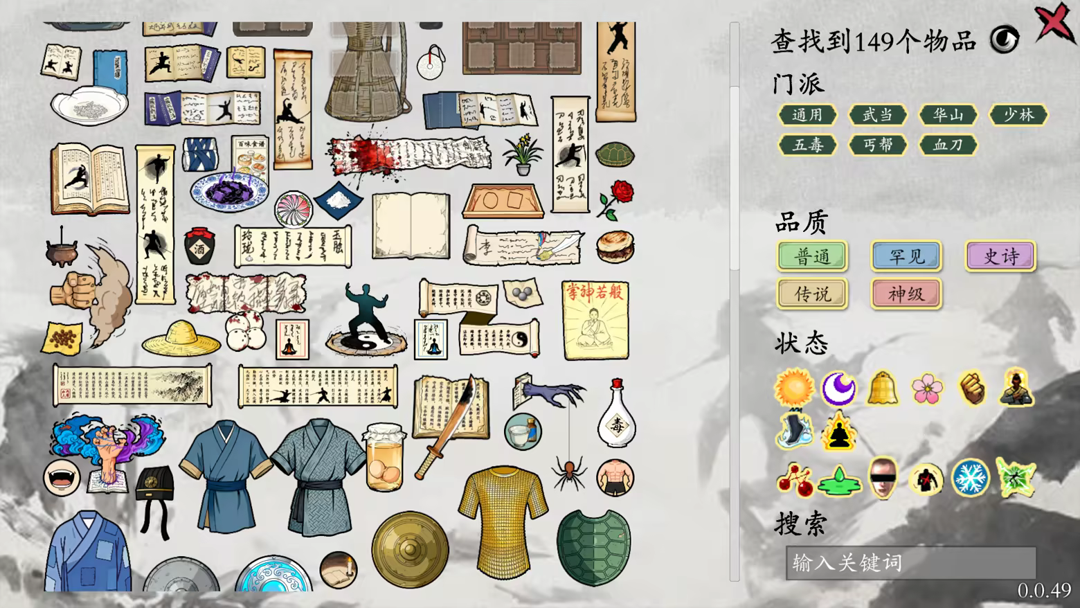 Backpack jianghu is a inventory management and battle royale game. Choose a starting sect, enter the world with 99 others, pick your path, battle and grow, and compete in the final showdown at Mount Hua's peak.