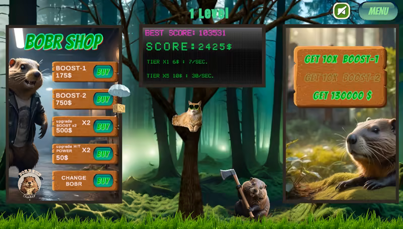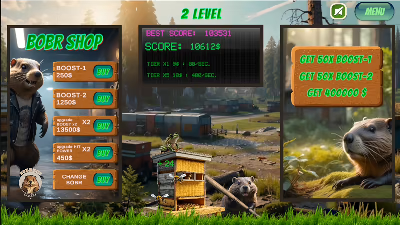 "Bobr Kur" is a dynamic clicker game where players control beavers collecting resources to build a dam.