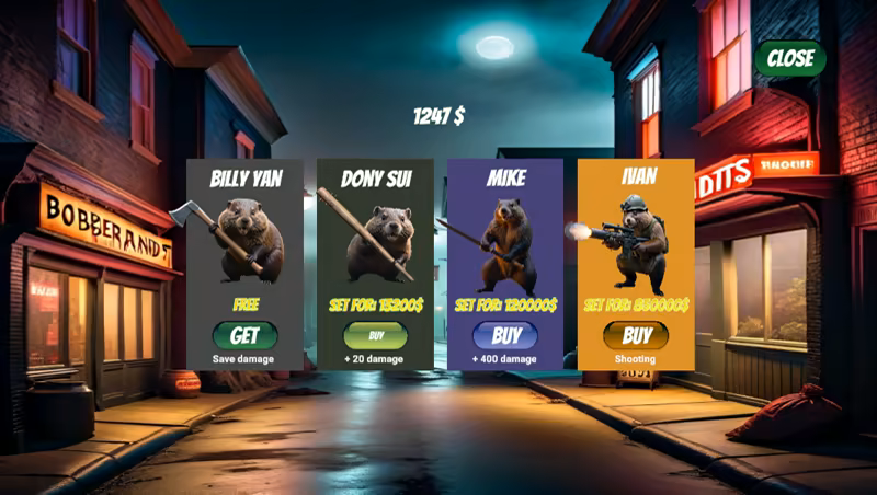 Each click gathers materials, and the more you collect, the more money you earn. Earned money can be spent on buying new beavers with enhanced skills, as well as various boosts like increased power or faster money generation.