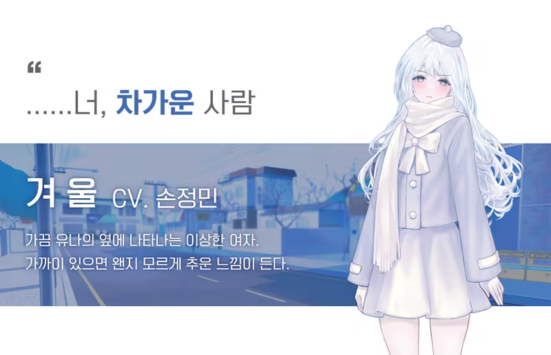 "봄을 부르는 설녀 - 유나" is a visual novel with no choices. Although it is a spin-off of "봄을 부르는 설녀" the story progresses from a completely different perspective, so even those who have not played the main story can play without any problems.