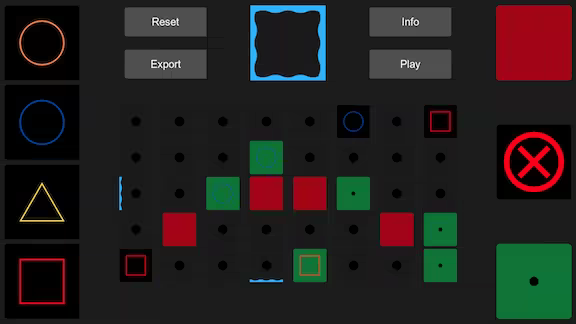 Each level is made on an 8x5 grid with up to eight total boxes (four of each type max), four walls, and one set of teleporters.