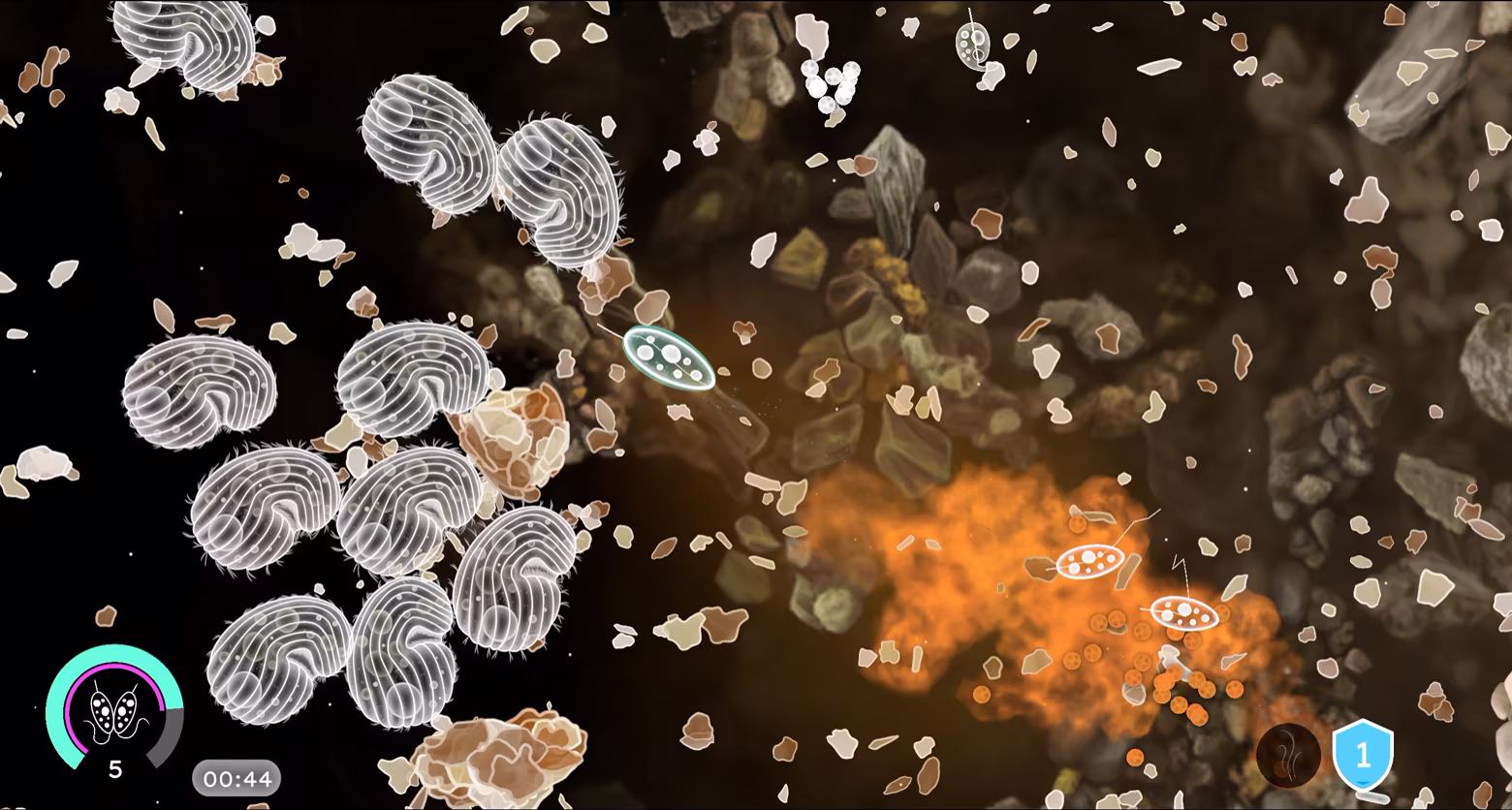 The ecosystem around you has been thrown into chaos, but it's slowly repairing itself. Bacteria are actively rebuilding the soil by gluing tiny particles into larger clusters, creating a more complex habitat that increases biodiversity. You'll have to navigate a continuously changing ecosystem with a variety of predators, hazards, and resources.