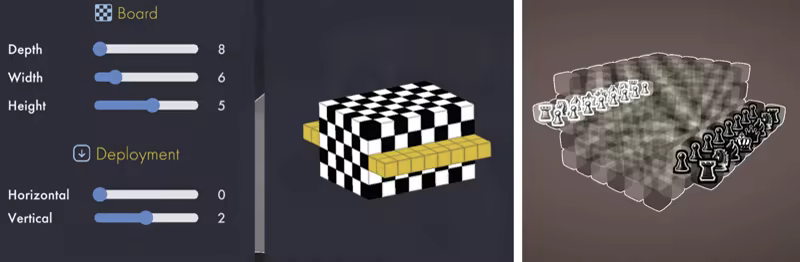 Experience chess across multiple layers with verticality in gameplay. Play in classic 1v1 duels, team-based matches, or even larger free-for-all games in local or online multiplayer. ChessFinity gives you new dimensions—literally and figuratively—to explore.
