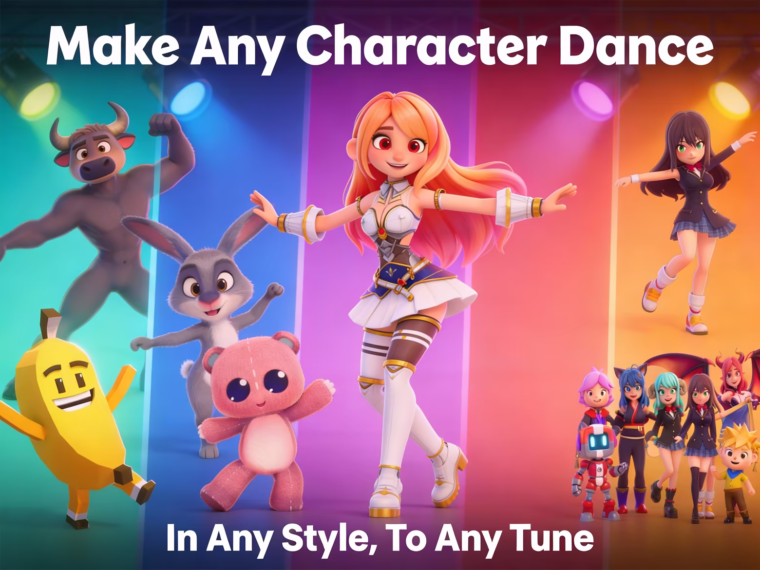 Combine anime characters with hip-hop moves, fantasy dancers with electronic music, or cartoon characters in realistic environments. Mix music genres and visual styles.