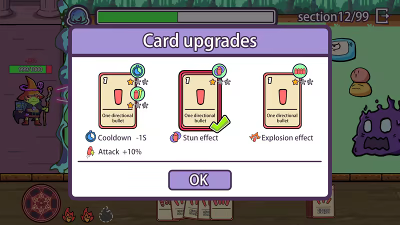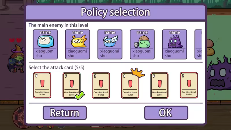 Diverse and Dynamic Enemies: Face a variety of foes ranging from mischievous small creatures to towering bosses, each with their own distinctive abilities and attack patterns. Learn to adapt your tactics in response to the enemy types, leveraging the strengths and weaknesses of your card choices to gain the upper hand.