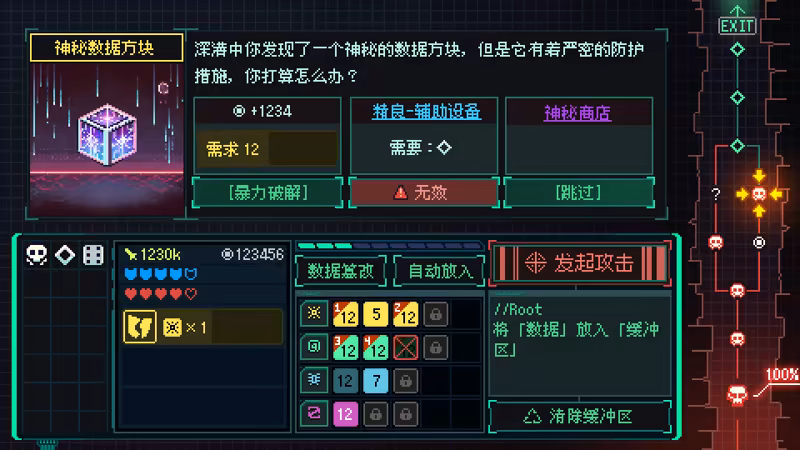《Diceyhacker 1999》 is a cyberpunk roguelite game that blends idle/incremental mechanics with dice-driven strategy, featuring humorous gadgets and a unique visual style.