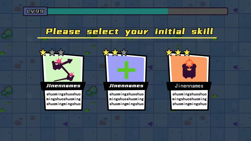 Collect shiny diamonds from fallen enemies to level up and become more powerful. Each time you level up, you can choose from a pool of 31 random skills - including damage boosts, heals, buffs, passive upgrades, and more. Every run is different, and your skill choices really shape your body. Take down elite enemies or bosses and unlock lucky draws, rare and powerful skills that can completely change your playstyle.