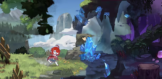 Traverse a world of beautiful hand-drawn scenery, unique biomes, and unforgettable landmarks. Discover glowing caves, lush valleys, and quiet corners where magic lingers and every detail invites exploration