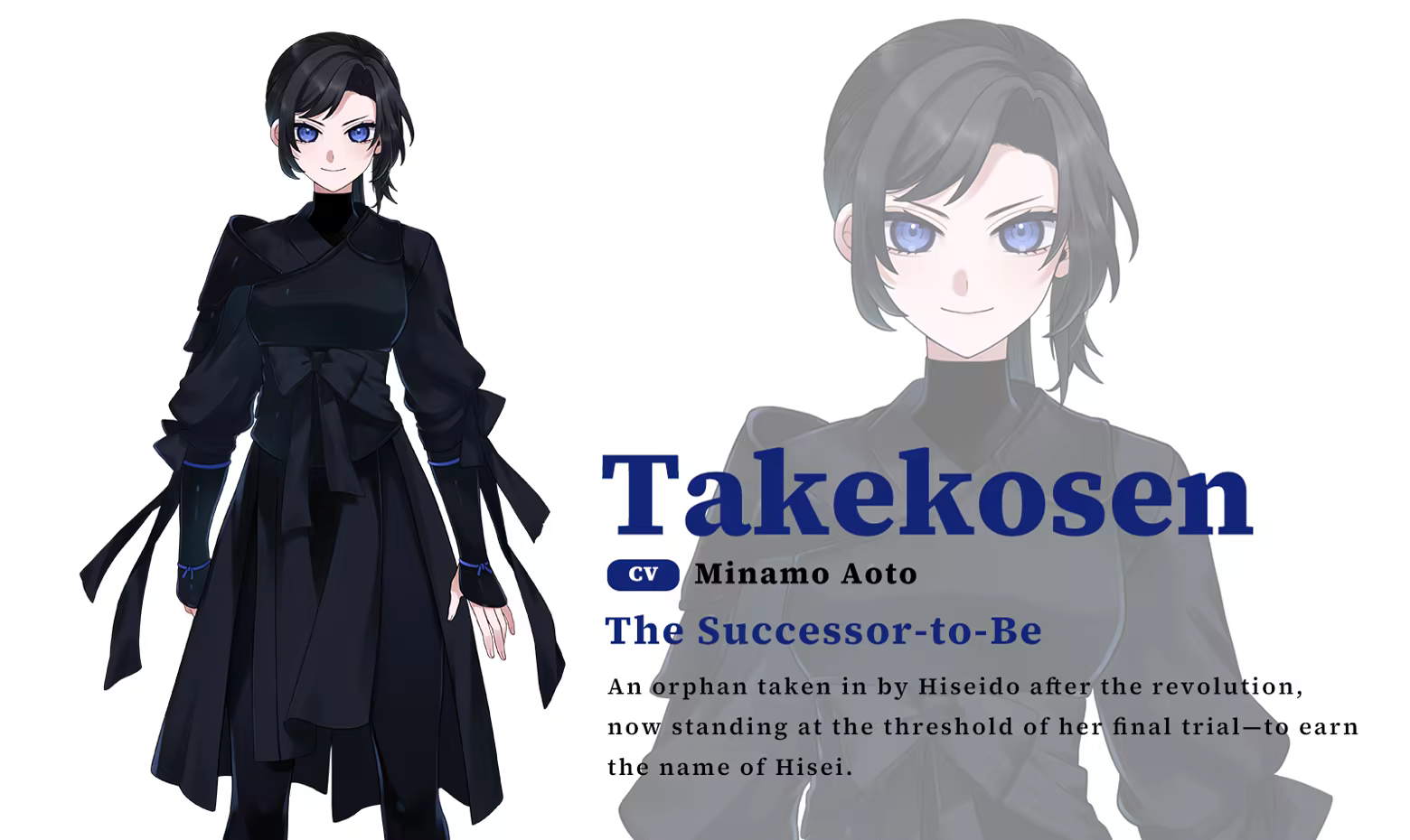 A silent assassin feared as the “Demon Blade,” he once served with merciless precision—but now watches over Takekosen’s awakening as her mentor.