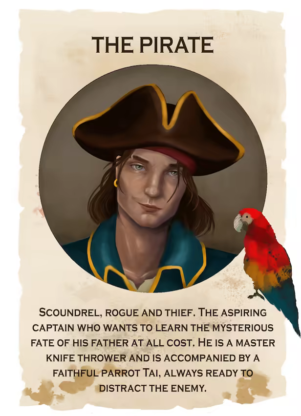 Discover the shady pasts of an aspiring captain and his crewmates. Utilize a diverse repertoire of character abilities to successfully defeat your foes. Be a quiet and elusive pirate gentleman, or a bloodthirsty murderer torturing his victims. Pay attention to your crew though, as the path you choose will inspire respect in some, while it may push others to mutiny. See what it’s like to be a true pirate captain!