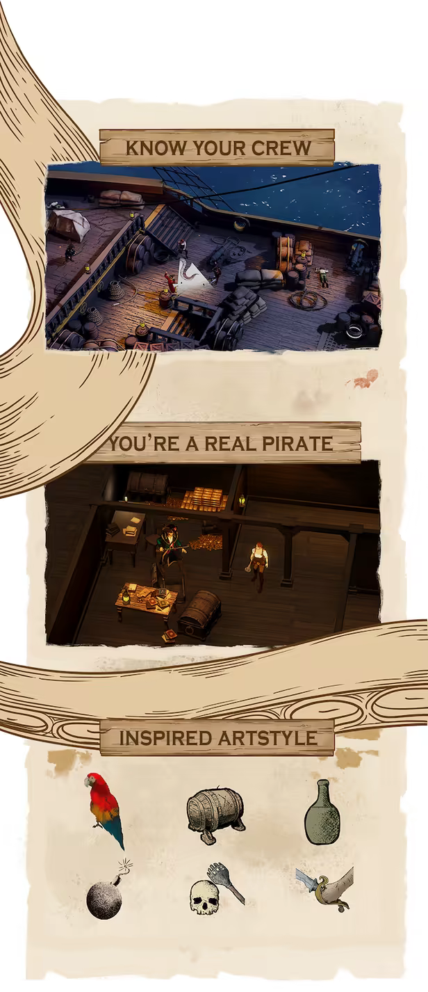 Take command over a motley crew of sea rogues and defeat superior forces of the enemy. A sound plan and tactical thinking will be indispensable, but should all else fail you can always resort to your intuition and improvise. Embark on a journey traversing the Caribbean Sea in the golden age of piracy.
