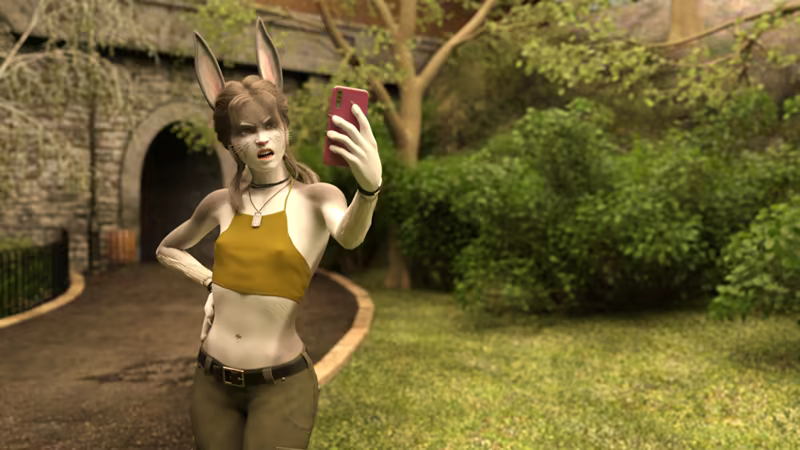 Pippi the bunny is a fiery eco-influencer and rebel in Furryville, driven by an idealist spirit. With her lush fur and piercing gaze, she’s a force of nature, using her platform to champion the environment with bold, unconventional protests. A dreamer with a photographer’s soul, she captures the wild beauty of the world through her lens, adding an artistic, introspective layer to her activism. Though her sharp tongue and disdain for humanity challenge you, her vulnerability emerges when her ideals falter, hinting at a playful, trusting side for those who earn her respect. Expect a clash of wills and a journey toward mutual understanding, spiced with her provocative charm.
