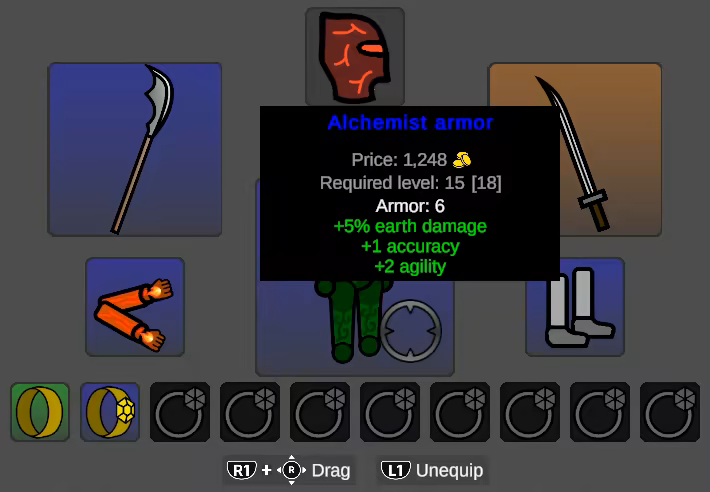 Equipment has different rarity, which affects stats and how many effects items can have.