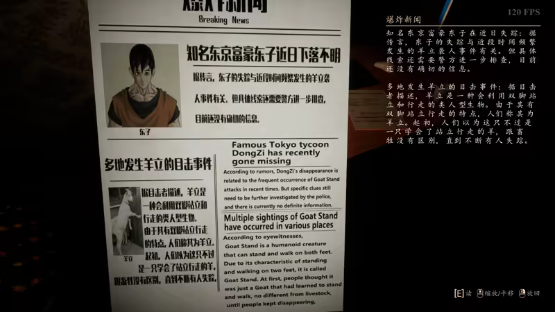 There is a rumor that there is a monster called Goat Stand. At first, people thought it was just a Goat that could stand and walk on two feet, not much different from other goats, until people kept disappearing because of it......