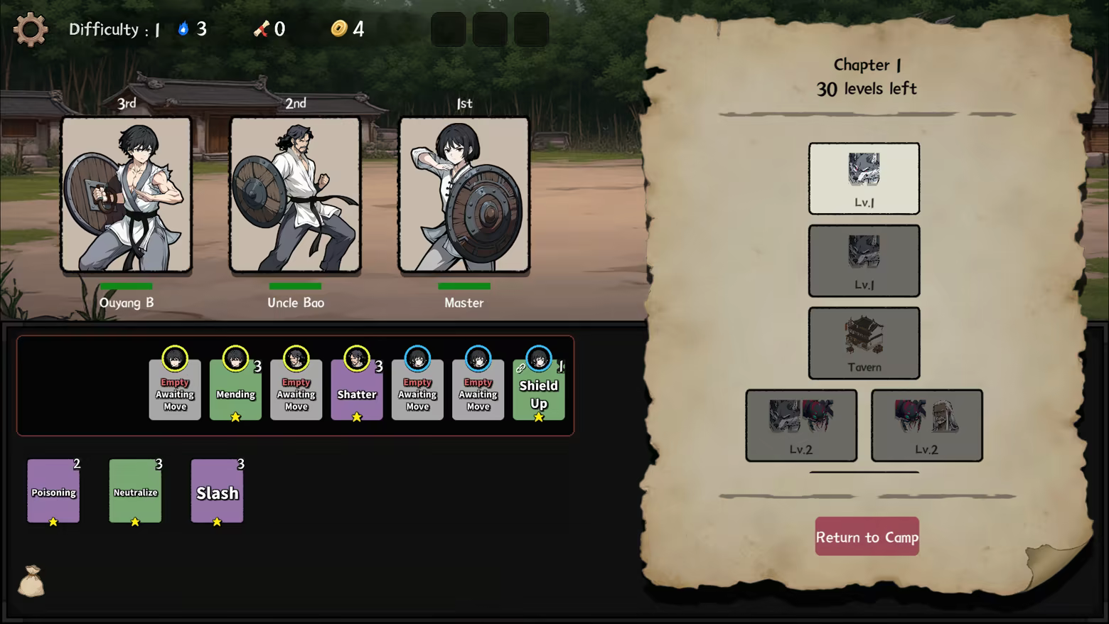 The game features Masters with unique abilities. Recruit them to strengthen your team and promote them to master Technique.