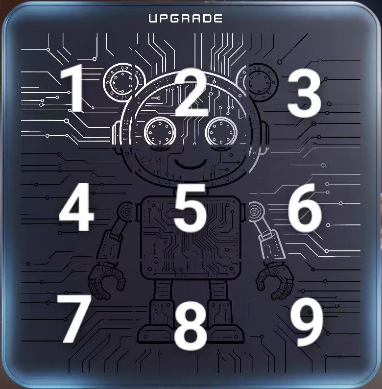 Every time you level up, a 3x3 grid pops up with three random cells highlighted. Pick one—that’s your point placement. Only when you complete a horizontal, vertical, or diagonal line do you unlock an active skill.