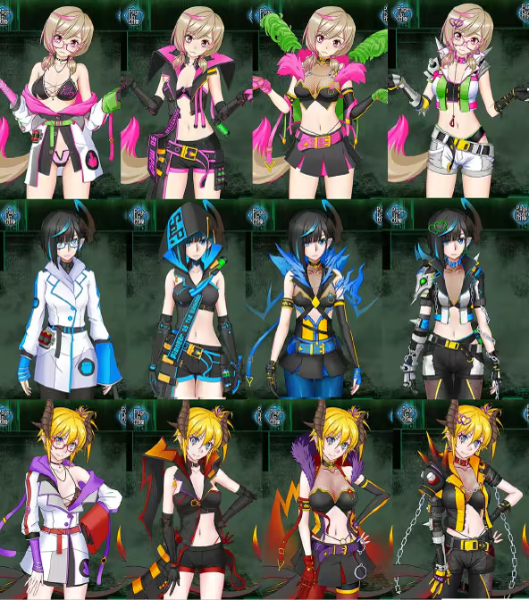 时装里的每一个零件都可以更换,而且在不同角色穿着时都会以自己不同风格显示.