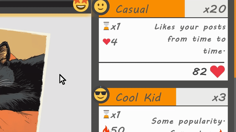 In the unpredictable world of social media, every milestone brings a new opportunity. Complete challenges to unlock random perks that boost your next fresh hashtag run. With a wide variety of perks to discover, no two playthroughs are the same. Strategize, adapt, and push your influence to new heights as you tackle harder hashtags with better perk tiers.