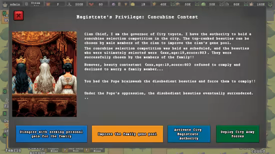 4. When your family's power is strong enough, various events will occur due to city governance;