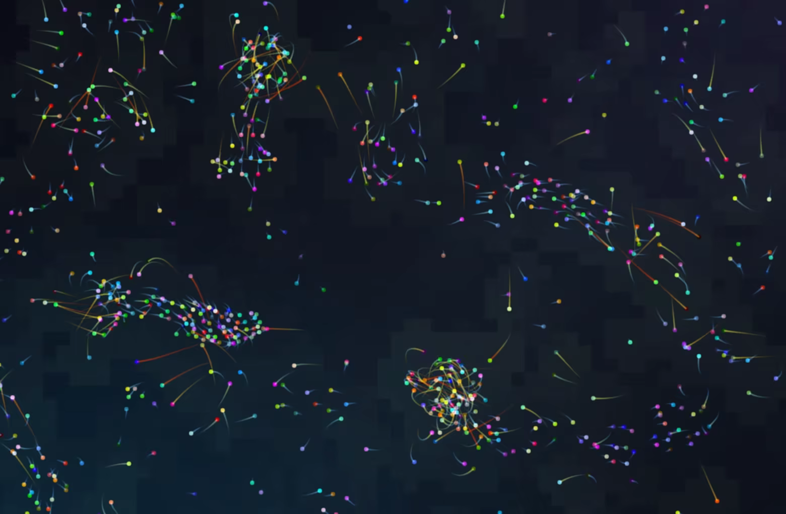 Watch particle trajectories, structures forming and dissolving, and experience a calming, hypnotic flow of light and motion.