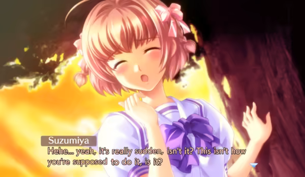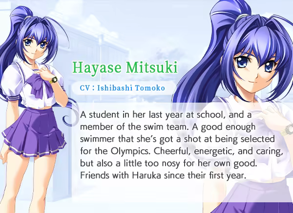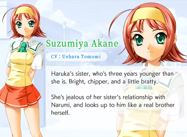 Days later, though, Haruka calls him out to the hill behind the school and tells him that she's in love with him. Knowing how much courage it must have taken a shy girl like her to ask him out, he finds himself unable to say no. The two begin dating, even though he's not really interested in her.