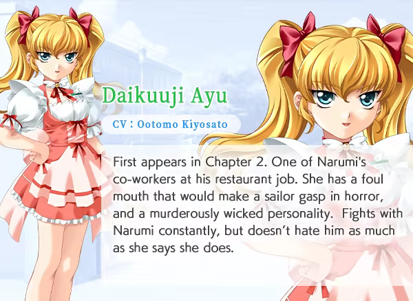 As the player, you will take on the role of the protagonist (Takayuki Narumi) and deepen your relationships with the heroines.