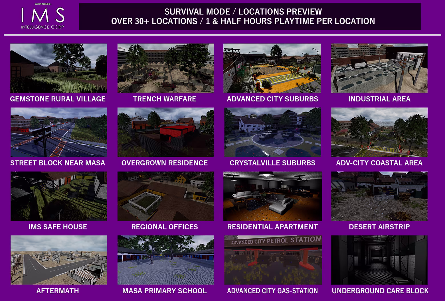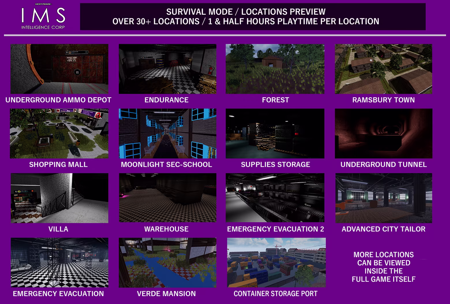IMS Intelligence Corp (Game) was developed from the ground up as the biggest, longest and most ambitious Super Incursion Installment to date, its story campaign is longer than all previous installments campaigns. Its got the largest amount of Launch content than any other installment. Its Story is 13 Chapters long each chapter being 45 mins to 1 hour to complete. Its got 33 different individual survival maps each being 2 hours to complete. IMS Intelligence Corp is the largest game in terms of how much playable Base Content it has and it has alot of Post-Launch Bonus Content scheduled to be developed and added to the game through updates. These will bring in brand new Survival Mode and Special Missions guns, maps and graphical upgrades further expanding the game. This Bonus Content will bolster the already available launch content making the game even larger.