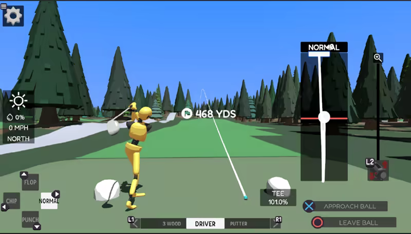 As a player, you are given all the tools you need, but must make the decision on what kind of shot (normal, punch, flop, chip), how to shape it (hook, straight, slice), and how hard to hit it. The game will not tell you any more than recommending a club to use. So lineup and take a few practice swings to determine your plan of attack. Practice swings will update the estimated shot trajectory, allowing you to determine if your current approach is going to work. Then it is up to you to replicate your practice swing once addressing the ball. And if you mess it up, hopefully you have one of your Mulligans available to redo it.
