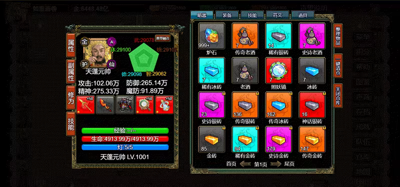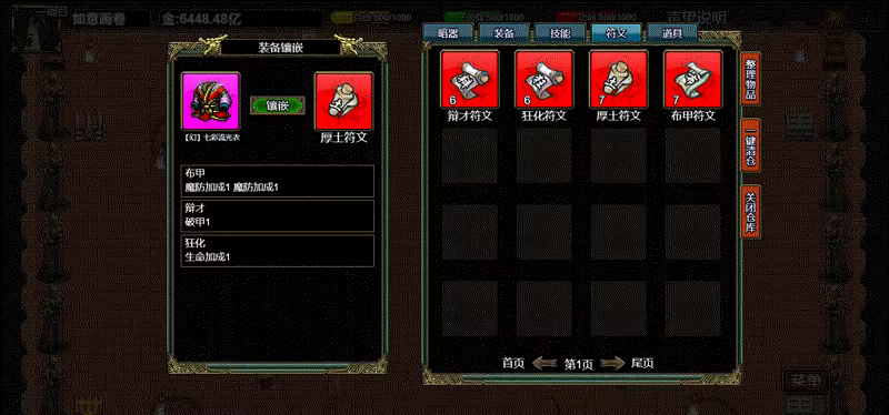其中镶嵌页面是给装备增加一个修为词条如下图所示(注:有该词条的装备需要对应的修为足够才能穿上)(符文可以由战胜对面的挑战npc获得,三级地图的宝箱中也可能开出)