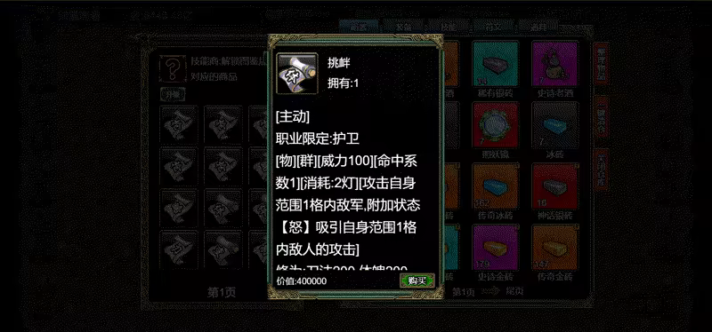 丹药商店需要根据游戏中抉择线路提升的功利点数和金币进行解