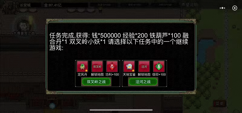 其中的一些任务可以选择多种后续任务(此任务的选择决定了顶上的三个系数,此三系数影响到后期的遇怪和主基地商店的解锁)