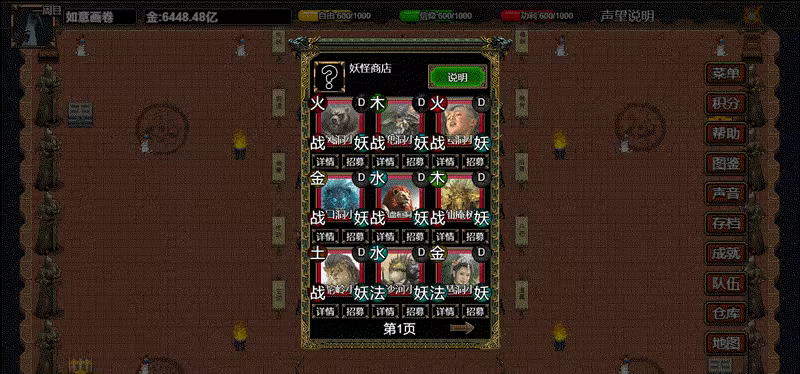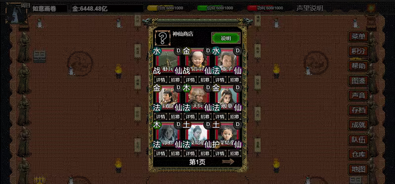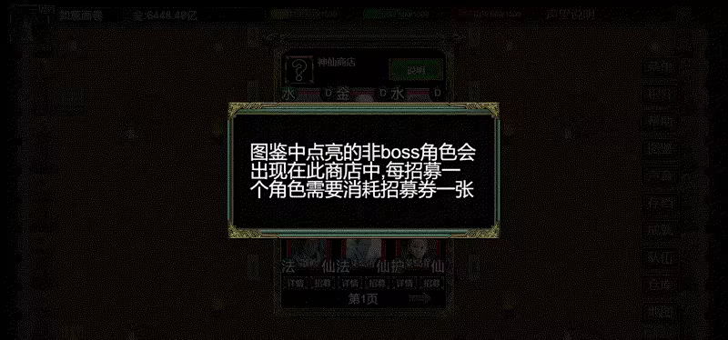 招募商店分为仙妖人(只能招募酱油角色作为融合的狗粮)