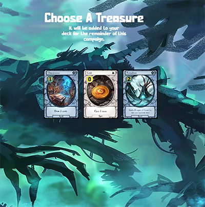 After each loss you'll get to choose one of several treasures to add to your deck. Treasures are extremely powerful cards that can only be accessed this way.