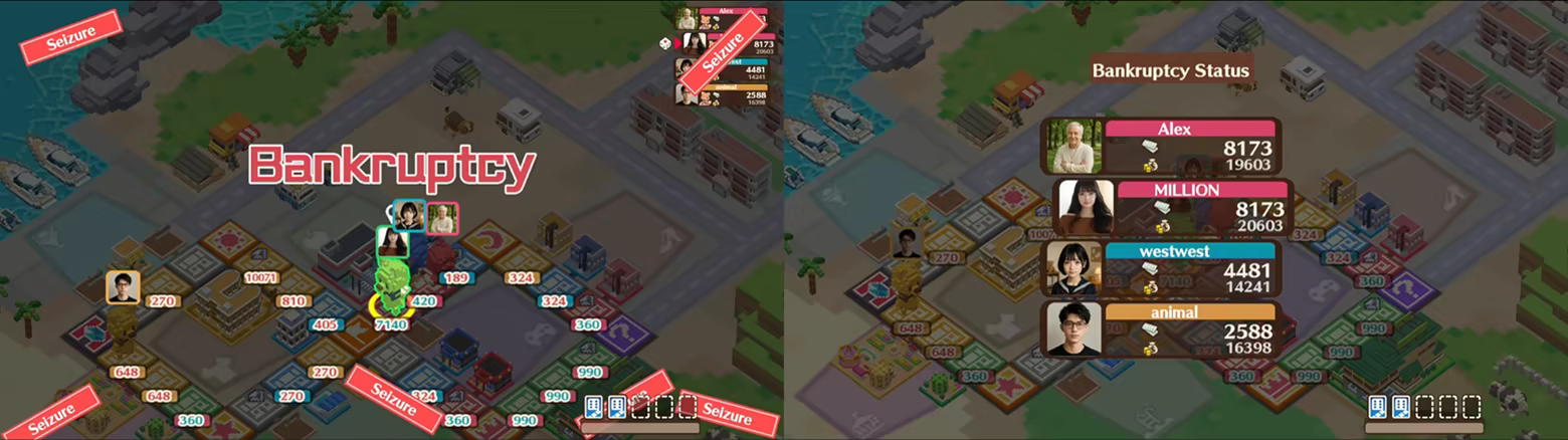 Earn money through investments, use cards to outplay your rivals, and drive them into bankruptcy!