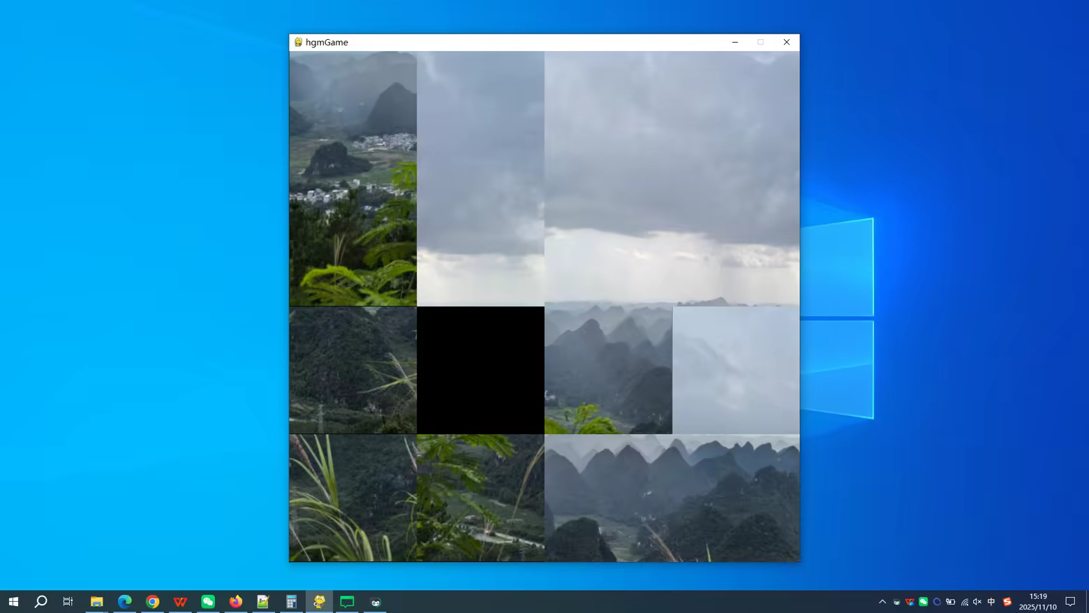 Game steps: Click the left mouse button on the image around the black square, and the image and black square will switch positions. The goal is to assemble all the small images into a complete image. The complete image is as follows: