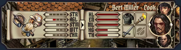 - Characters need to eat, drink, and sometimes sleep to restore morale and strength.