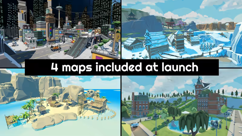 And 30+ ridiculous guns to kill your friends with! What's that? You're wondering why there is a Trombone, or a flower? Guess you'll just have to play the game to find out what they do!